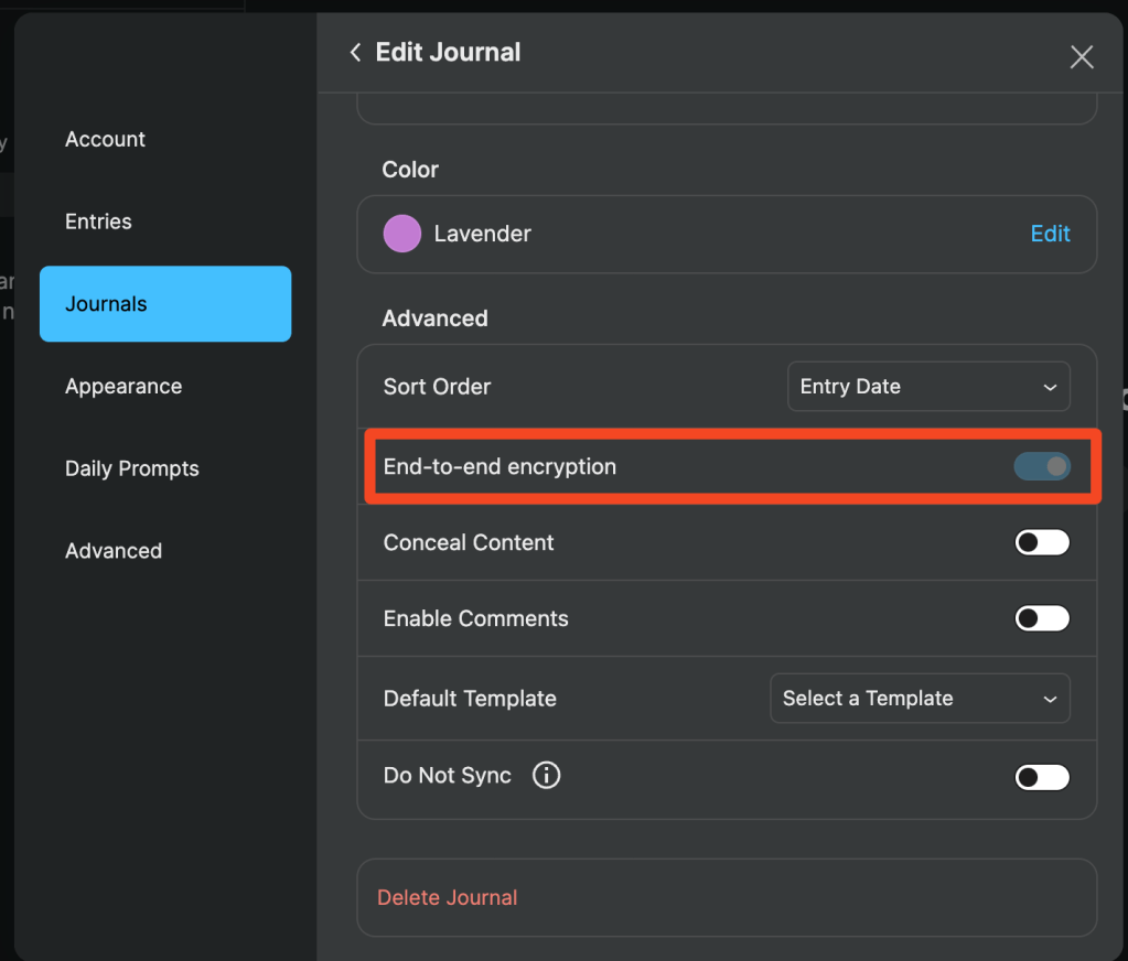 After enabling end to end encryption for your Journals, they will be encrypted across all devices and the encryption key will need to be loaded to each device to view the Journals.