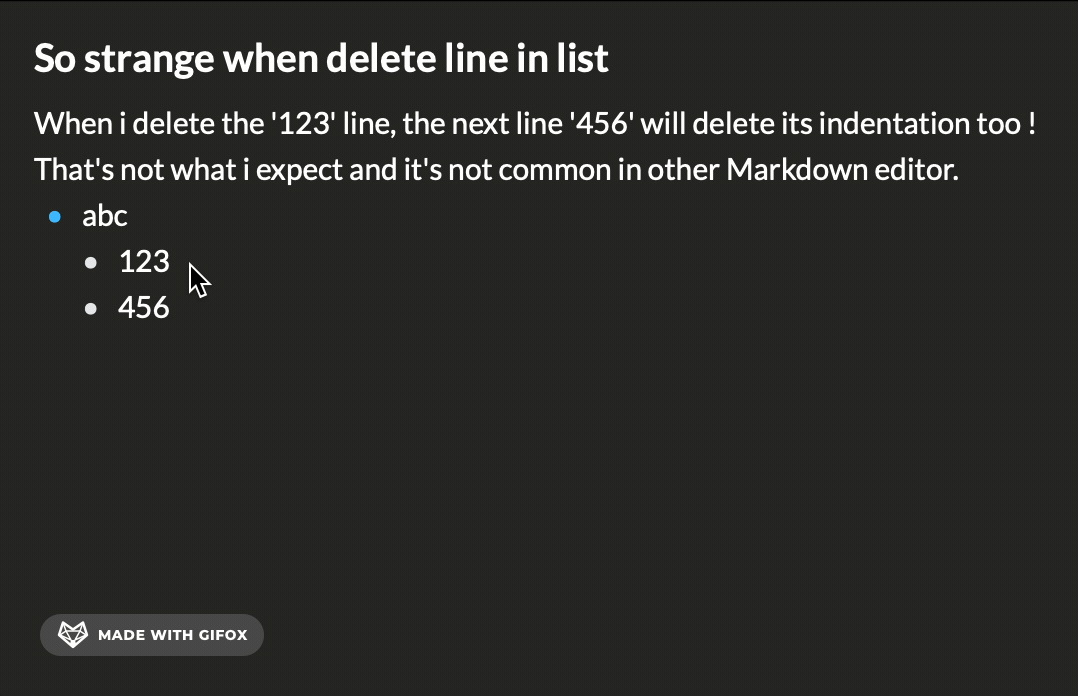 Delete List line will shrink next line’s indentation. That’s very odd.